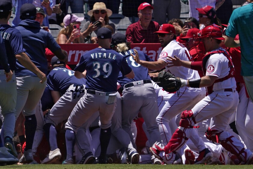 6 Players 2 Managers Ejected During Angels-Mariners Game After Brawl Erupts on the Field. Whatever it was set Winker off. The Seattle Mariners and the Los Angeles Angels engaged in a lengthy full-team brawl in the second inning Sunday after tensions over two days of inside pitches boiled over.